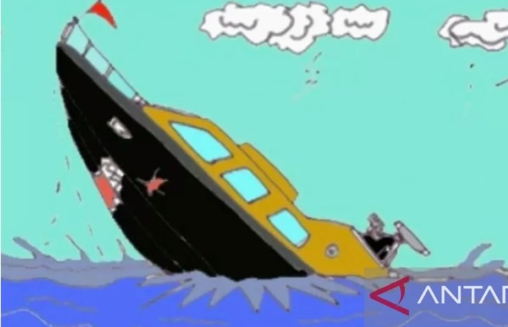 Ombak besar kembali menghantam kapal yang sarat muatan tersebut. Perlahan-lahan kapal itu miring ke kiri dan sebagian badan kapal tenggelam.